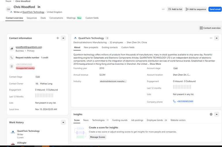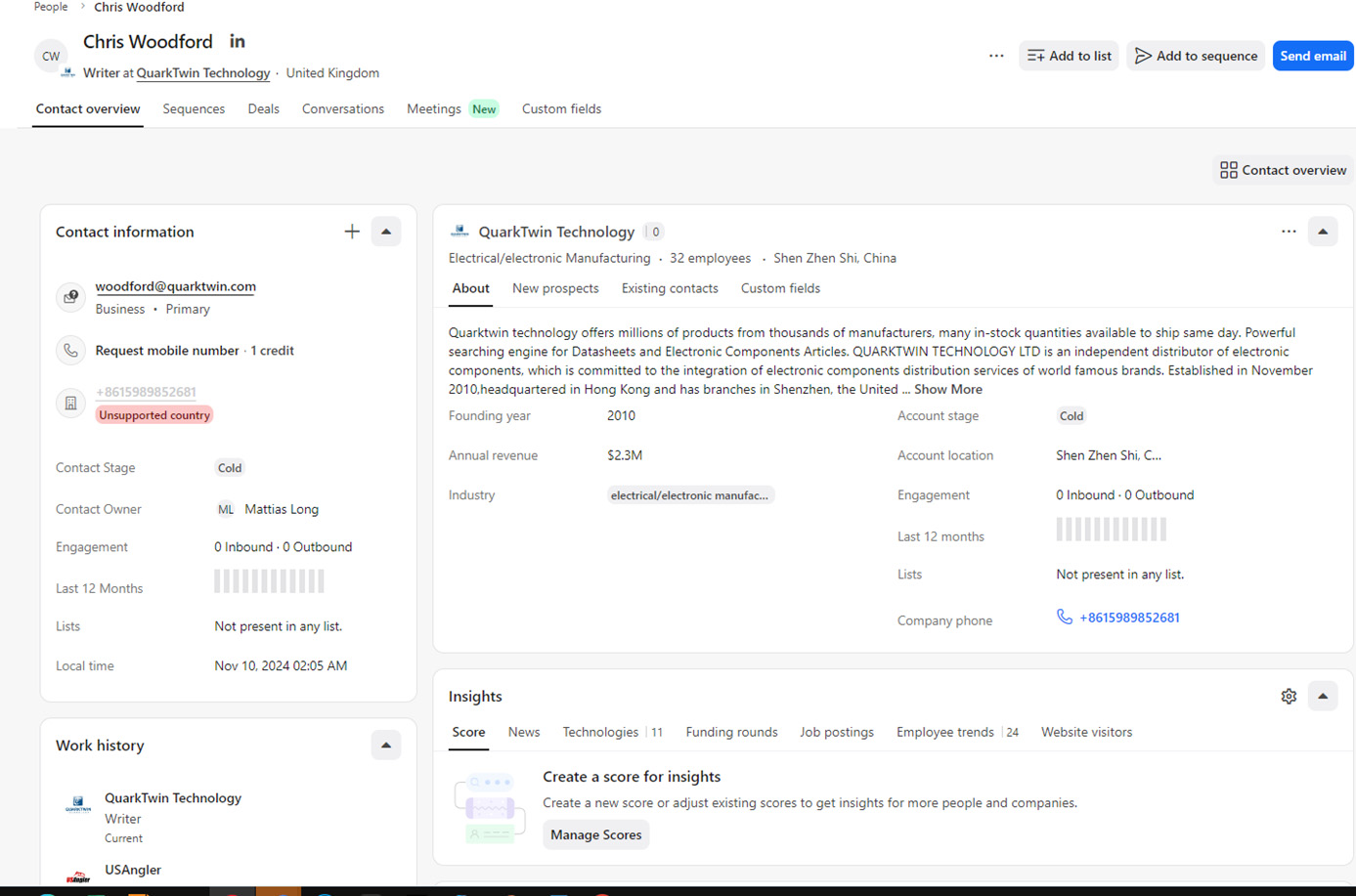 The real Chris Woodford was contacted and confirmed his name was usurped and doesn’t work for QuarkTwin:
