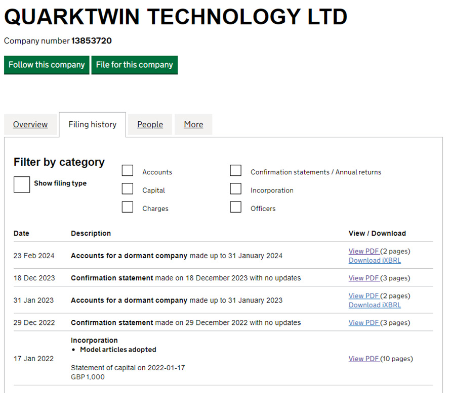 QuarkTwin has registered a business in UK to bring more confidence to European buyers but the ‘subsidiary’ is a Nutshell: