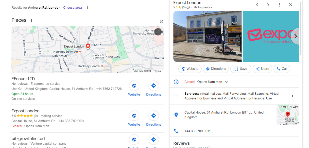 The UK subsidiary located at UNIT G1 CAPITAL HOUSE 61 AMHURST ROAD LONDON UNITED KINGDOM E8 1LL is a PO Box