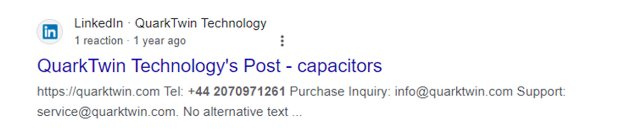 Buyers looking for specific electronic components can submit a RFQ (Request for Quote) on Electronic Part Search websites they can receive an offer from one of their fake business but also from QuarkTwin directly.