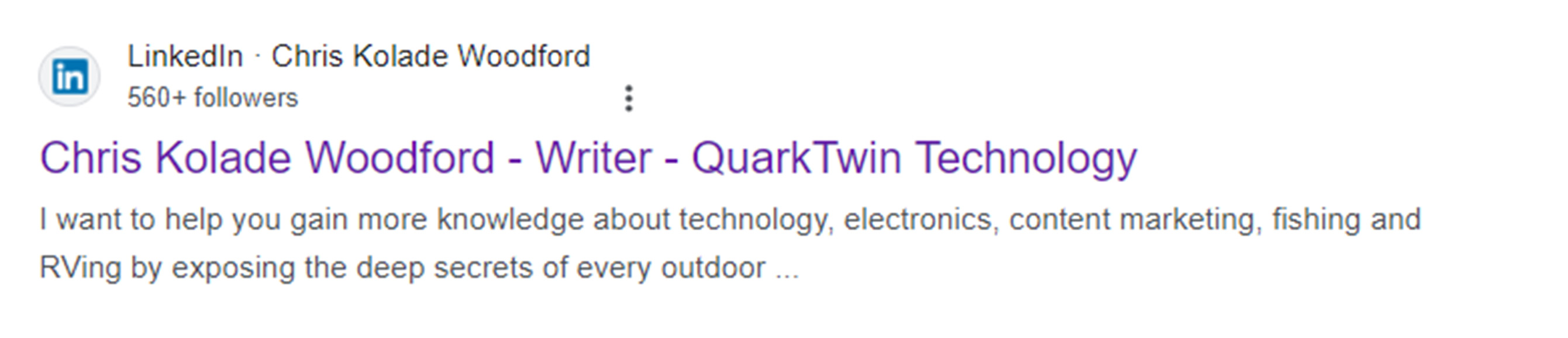 The real Chris Woodford is an English Writer located in Cambridge. After contacting him, we understood the real Chris is not working for QuarkTwin and his name was usurped. They have added Kolade on his whole name: